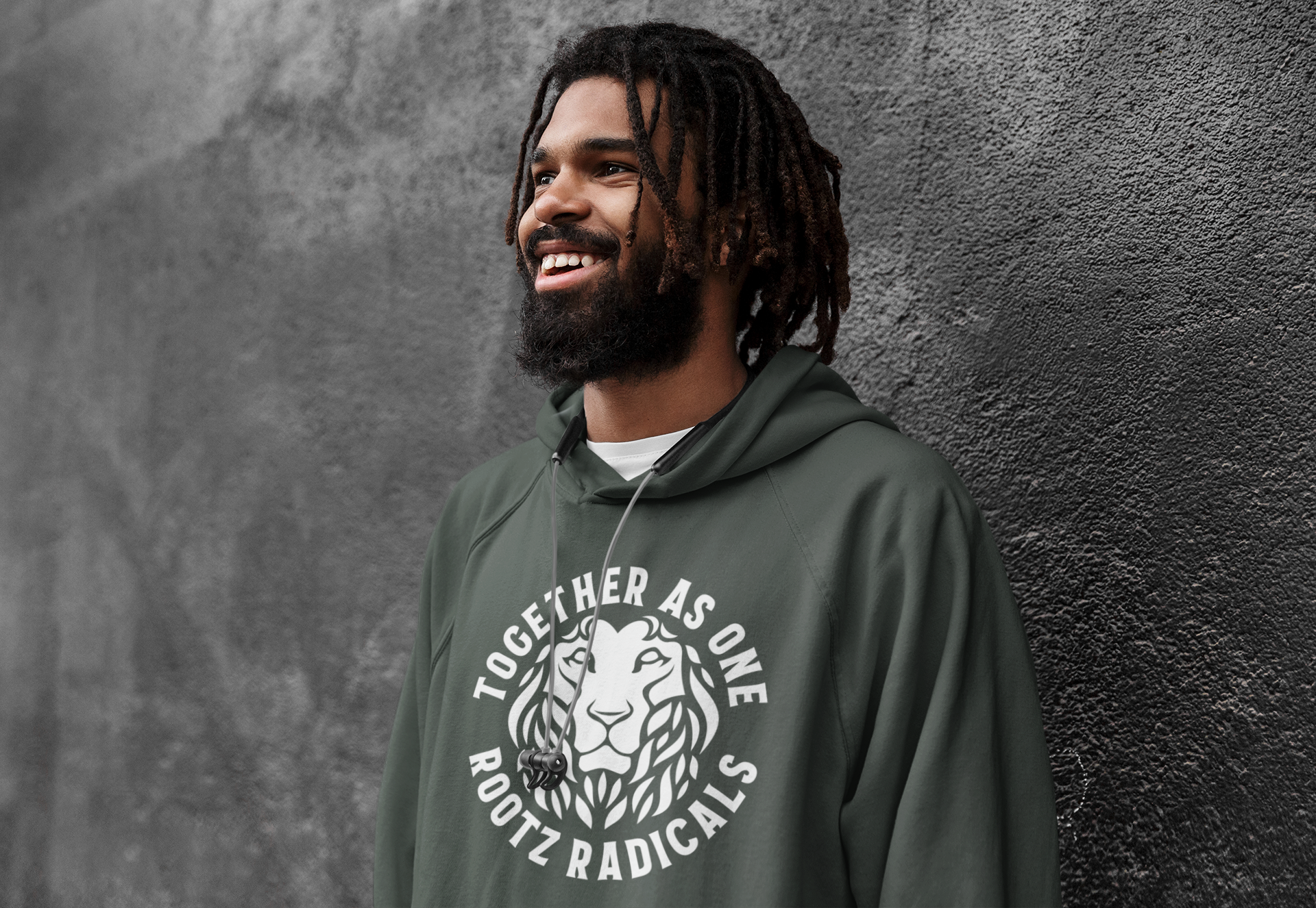 Der einzigartige ROOTZ RADICALS – TOGETHER AS ONE Hoodie in militantem Khaki, für dich und deine Family.